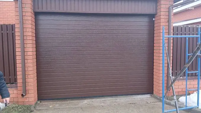 Установили ворота в гараж, без проблем, быстро выехали на замер, помогли подготовить проем, установили ворота, спасибо
