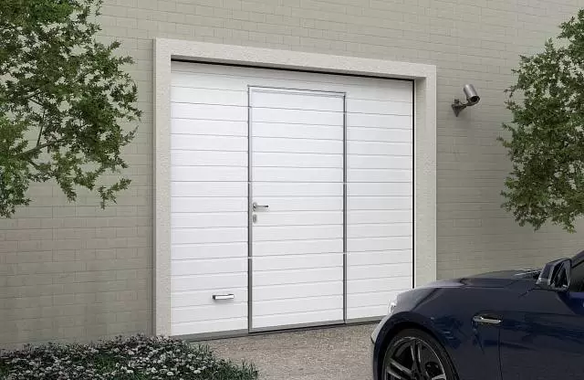 для отдельного входа-выхода. Дверь гармонично сочетается с гаражными воротами, придавая фасаду дома завершенный вид