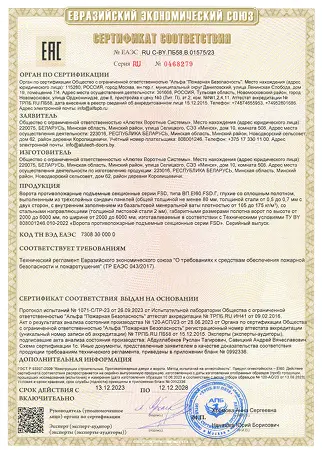 Сертификат соответствия нормам ТР ЕАЭС «О требованиях к средствам обеспечения пожарной безопасности и пожаротушения»
